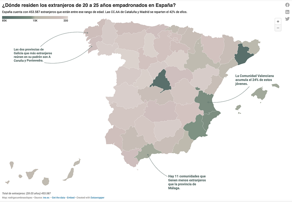 El objetivo era mostrar cuanto extranjeros hay empadronados tanto en las comunidades como en las provincias, resaltando los resultados más llamativos y aquellos cercanos o que tienen referencias con Galicia.