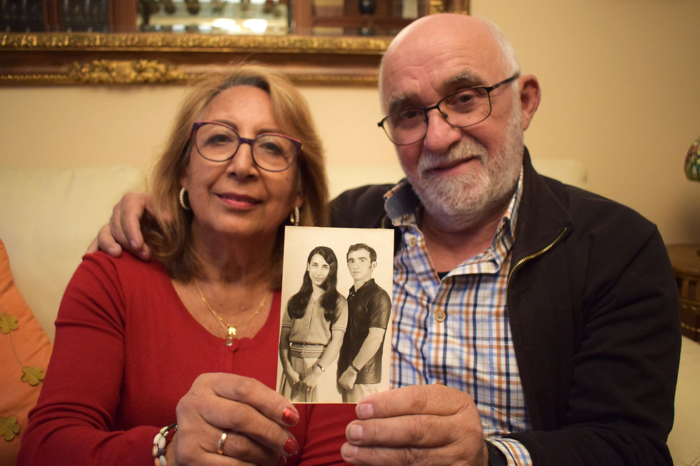 María Lorenzo y Rodrigo Vázquez sostienen una fotografía de cuando eran jóvenes. AINARA RODRÍGUEZ