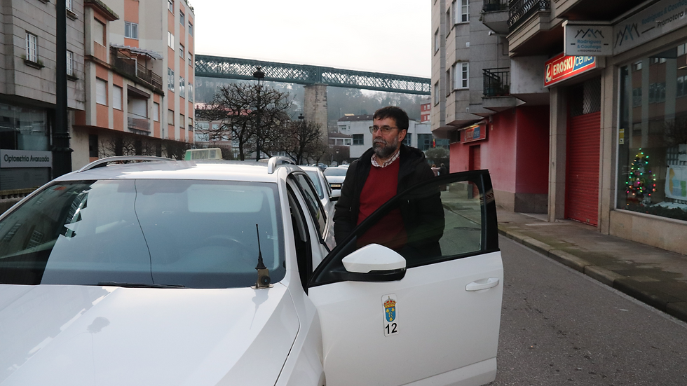 Antonio Piñeiro, taxista durante 8 años en Vigo posando al lado de su taxi.